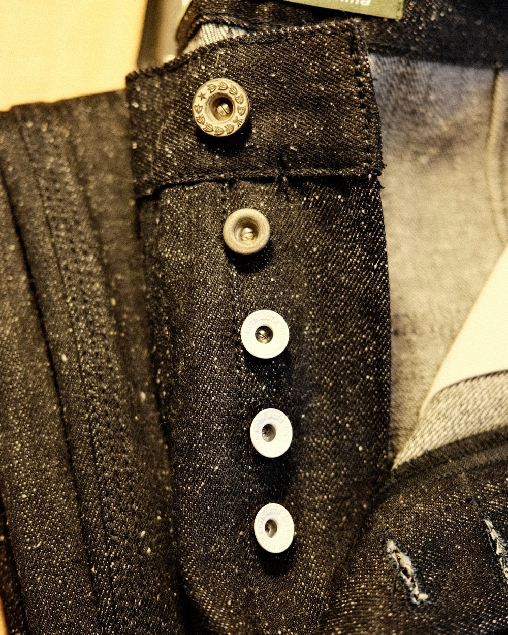 Pants that are (Repaired) have had faulty buttons removed and outfitted with new hardware. The images are examples of how they might look, but each jean will have its own unique repair.